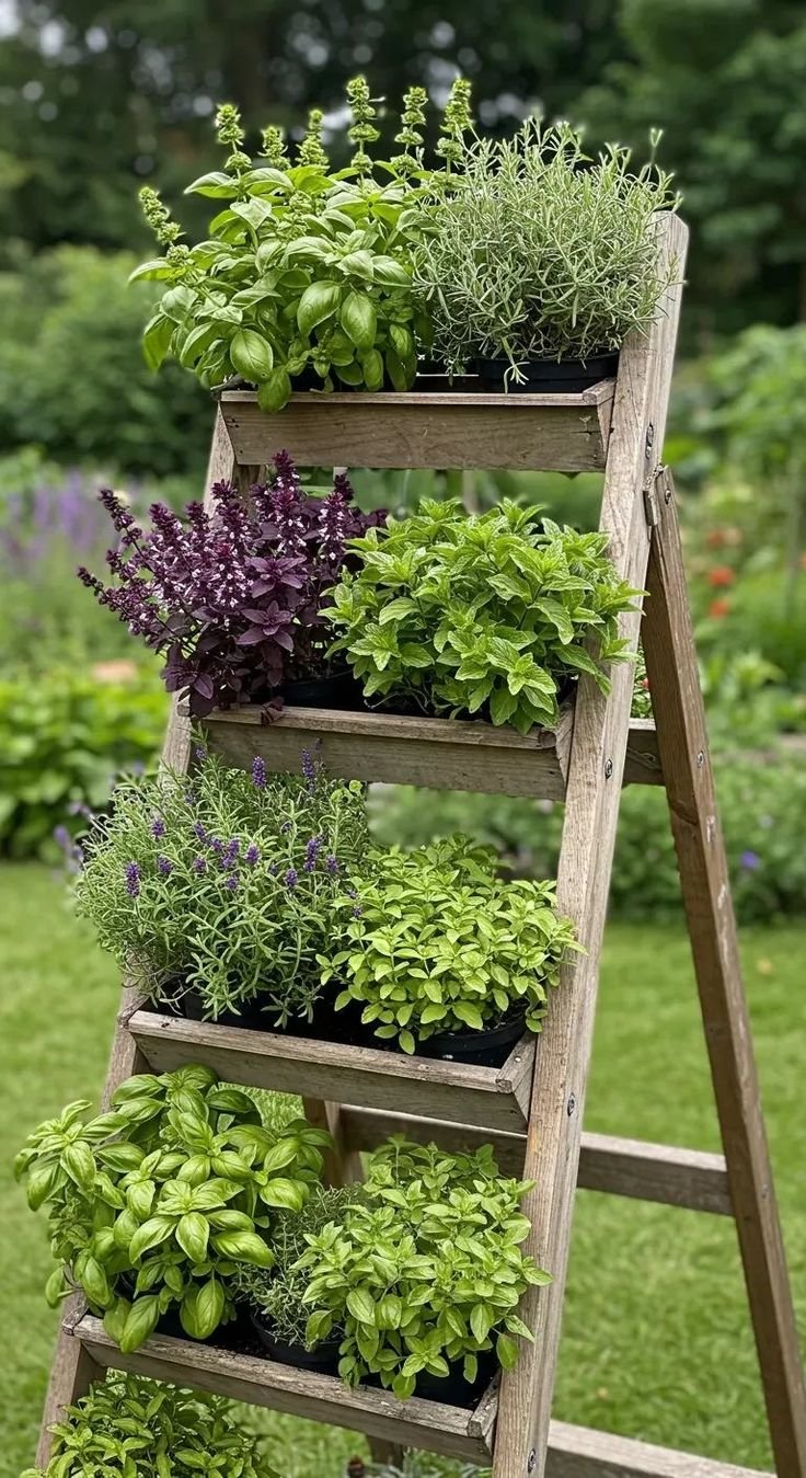 Wooden Multi-Tier Herb & Plant Ladder Stand